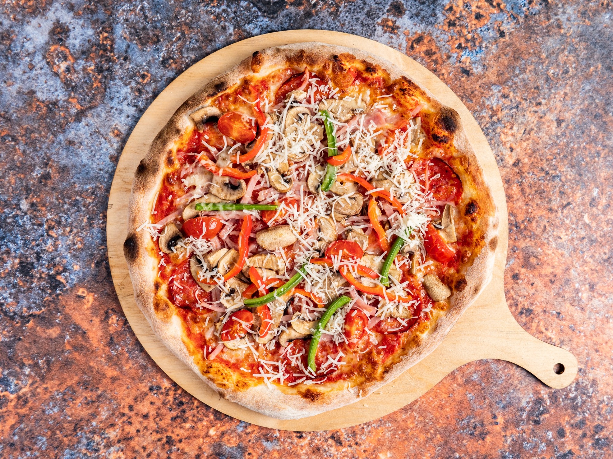 Ser mozzarella, Boczek, Jajko, Cebula biała